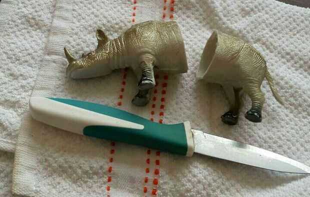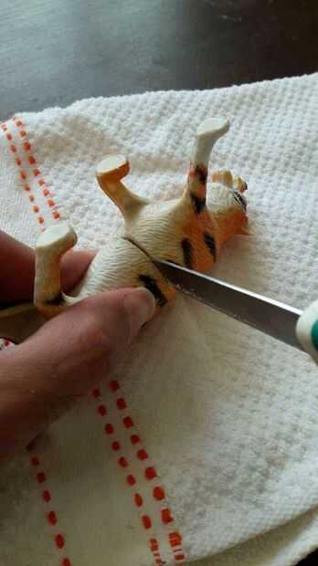 Coloque los juguetes en una toalla y cortar cuidadosamente con un cuchillo de cocina.