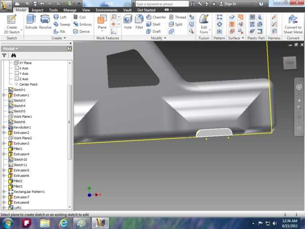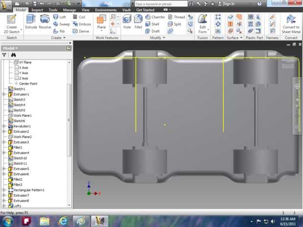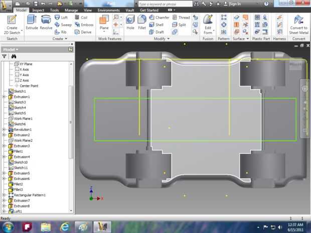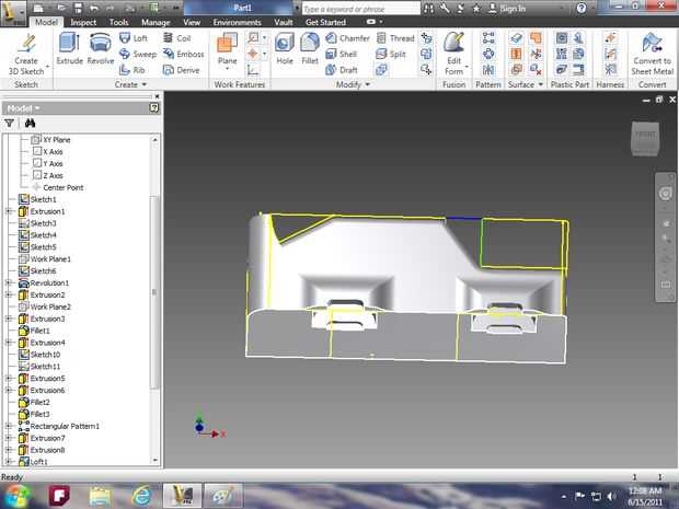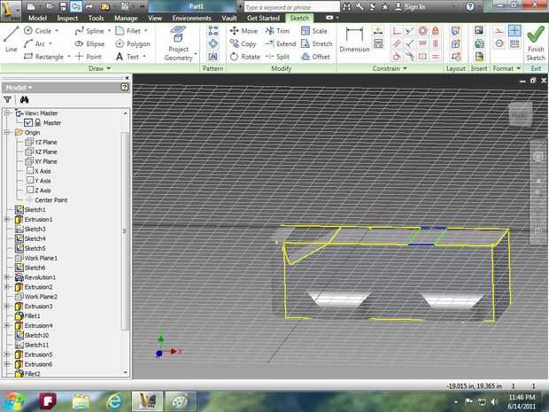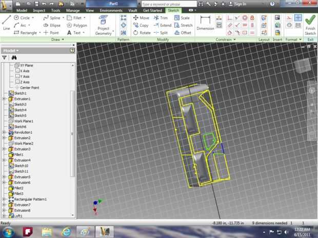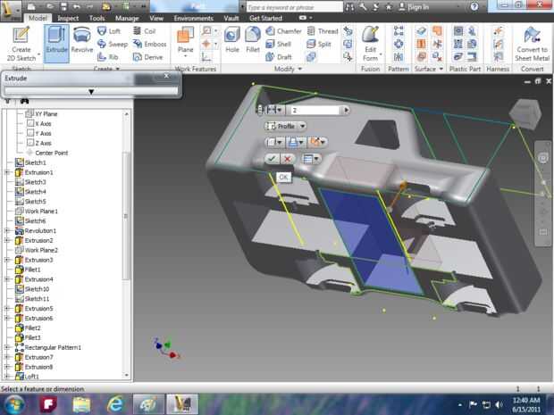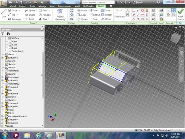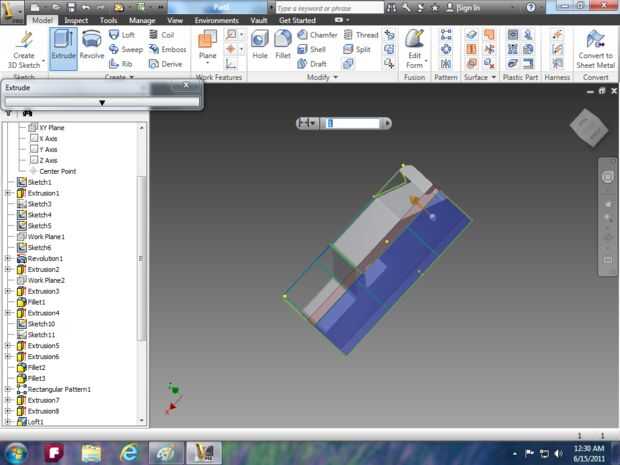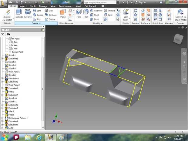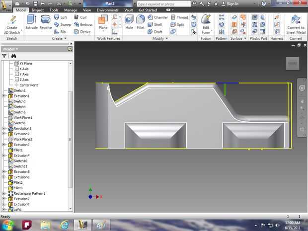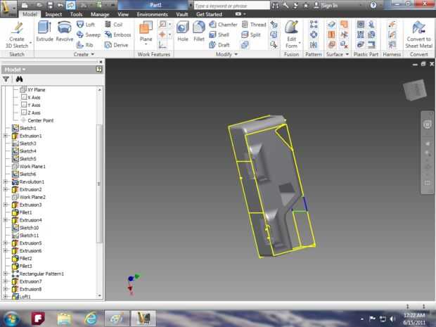 Imagen 14: utilizar la herramienta extrusión para hacer la campana y utilizar la herramienta de loft para el parabrisas.