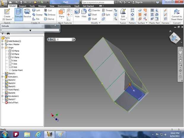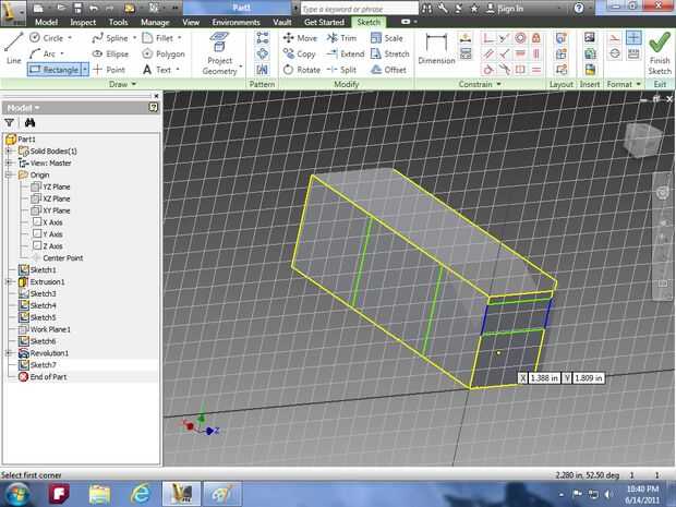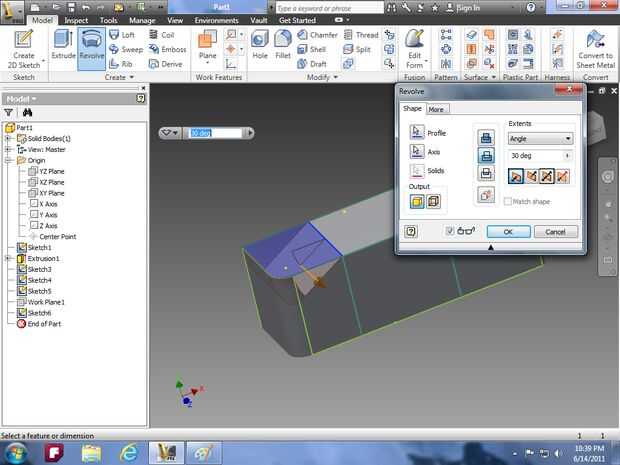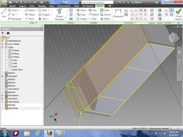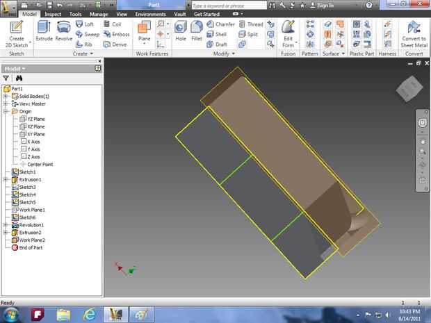línea. Vaya a terminar el boceto y luego utilice la herramienta de revolución y la función de corte seleccionar un lado del rectángulo y la línea en la