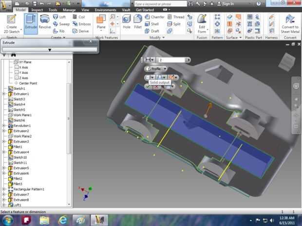 Imagen 4: Utilice la herramienta de extrusión y dar cierta profundidad a su coche. Ahora vaya al dibujo 2d y hacer algunas líneas para crear la ventana trasera.