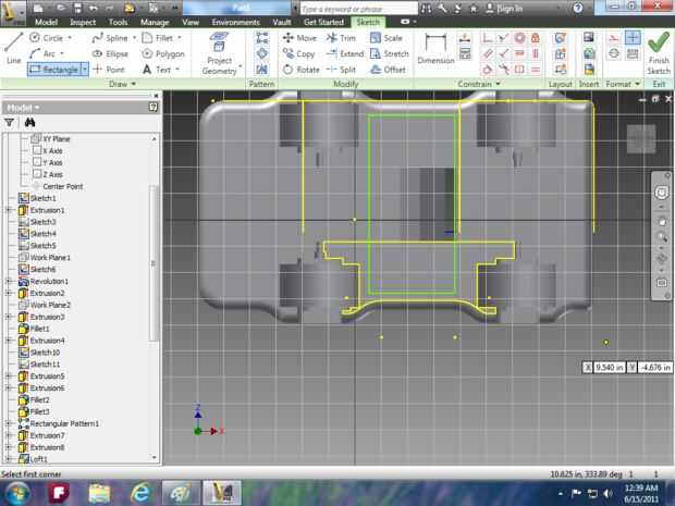 Imagen 13: iniciar un dibujo en la parte superior del coche y crear algunas líneas o usar la herramienta Rectángulo para separar la campana de la