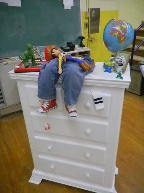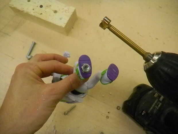 Con mi superior cortado y atado, podría terminar colocar los cajones. Estos se sujetan con una pequeña cinta de doble cara y los mandos reales va todo el camino a través de la cómoda. Esto era importante, porque varias personas trataron de abrir mis cajones. Luego había atornillado abajo de la mitad inferior del cuerpo de Chucky y comenzó a colocar los juguetes. Estos también fueron atornillados por la parte superior de la cómoda. Tuve que taladrar Buzz y Rex y pegamento en una tuerca hexagonal, por lo que podría ser Unidos permanentemente. Una vez más, pegué las tuercas en su lugar con la misma prima de PL ol '.