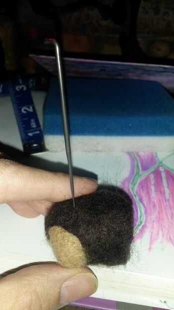 Mantenga la aguja punzante al azar lugares y seguir toda la pieza. En el último espectáculo de la foto yo soy fieltrar justo en el lado cerca de la parte inferior, cerca del borde. Es fácil olvidar el canto de una pieza especialmente si sosteniéndolo con los dedos. Me suele poner mi dedo en el borde opuesto y luego apuñalar con la aguja para que mi aguja no es donde cerca de mi dedo.
