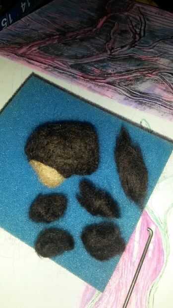 Roll en bolas sueltas, como se puede ver a que mis cojones sueltos son sólo ligeramente más grande que la nariz. En la primera foto la broca más larga de lana enrollada es para la cola. Puede preparar la lana para ahora si quiere o hacer un rollo de lana más adelante. Voy a explicar la parte más adelante.