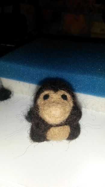 Si usted tiene un poco perdido de fibra que se está pegando hacia arriba desde el centro del ojo, que es muy largo, puede recortar con la tijera. Es difícil de tame extremos largos para un área tan pequeña, se puede evitar que esto suceda haciendo que tus bolitas de lana son fuertemente comprimidos y rodados hasta ningunas fibras escapan la bola antes de adjuntarlos. Es algo que puede suceder y generalmente lo hace, aunque para esta mascota de bolsillo no.