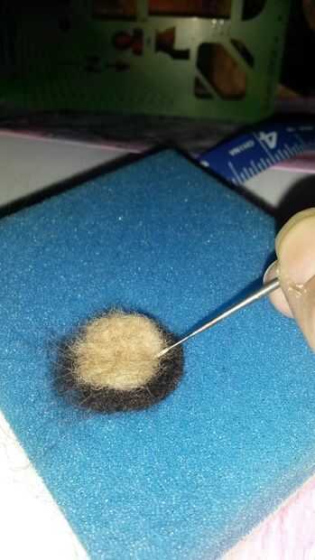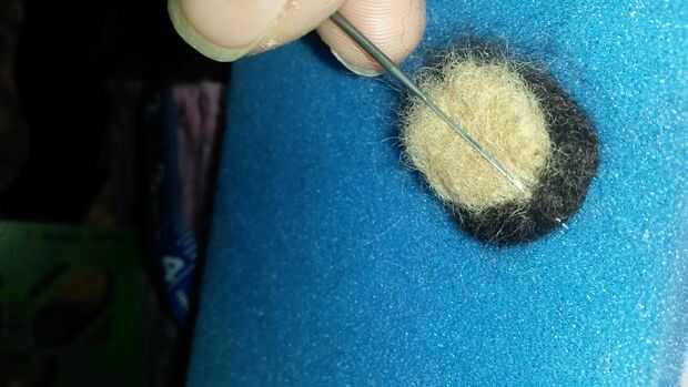 Sentido desde la punta hacia abajo hacia el final de fibra suelta de la oreja. otra vez continuamente desplace que usted la aguja por lo que no eres fieltrar un punto continuamente.
