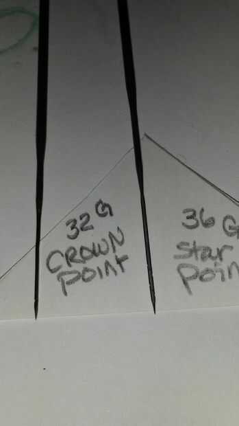 En este tutorial estoy usando 2 agujas diferentes, voy a explicar por qué selecciono y uso de cada uno de ellos.
