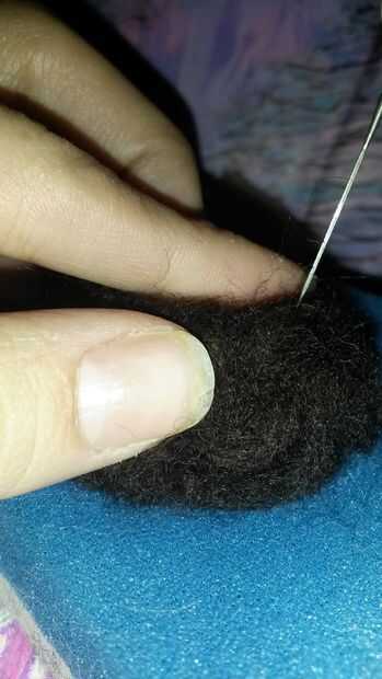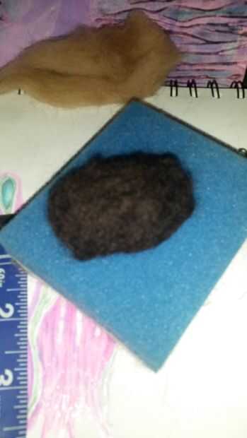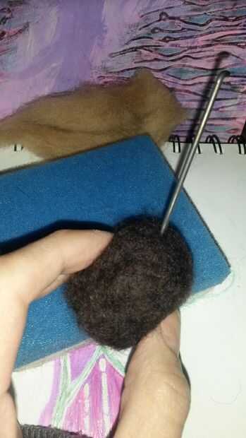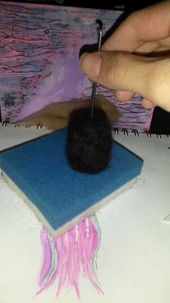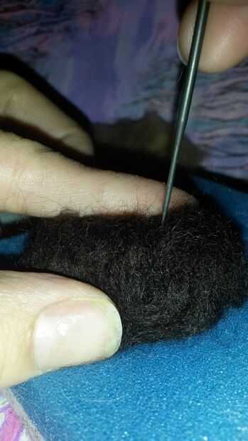 No olvides seguir usando su aguja corona, esto deja la superficie burbujeante mirando como en la última foto, pero se sentirá la resistencia de la aguja como en entra en el centro de su forma de lana. Nunca fuerce la aguja a través de una pieza puede romper la aguja, y mantener un ojo en los dedos. Agujas de fieltrar rasgan la piel por lo que va a ser muy doloroso si se apuñala a sí mismo. Sujete la aguja suavemente entre los dedos para que si se atasca se desliza hacia arriba mientras su mano se mueve hacia abajo.