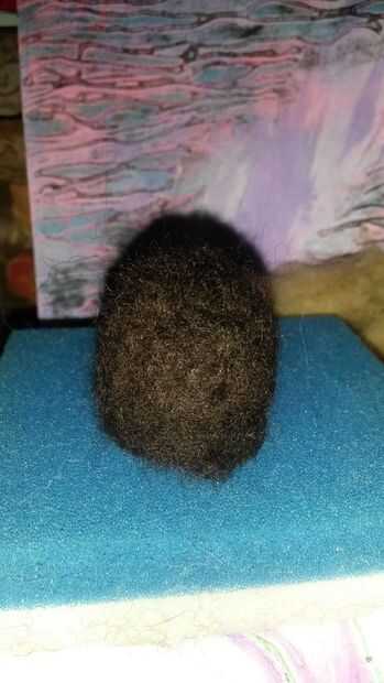 A partir de su esfera del ultimo paso vas para convertir esto en un huevo como forma con un fondo plano. Para hacer usted simplemente sentía los lados, empujando suavemente con el dedo a forma la lana más rápidamente. Sentía la parte inferior plana, luego sentí la parte superior. Trate de seguir la curva con la aguja para que la lana está siendo empujada hacia el centro. Así que por seguir la curva que significo que su aguja sería recto hacia arriba y hacia abajo en la parte superior central, y luego como progreso el lado derecho de la curva en que su extremo de la aguja podrían inclinar a su derecha, donde como el lado izquierdo, la base de la aguja (no la punta) se inclinaría hacia la izquierda,