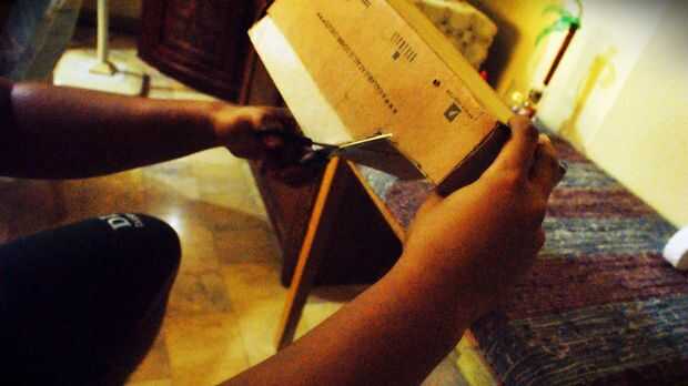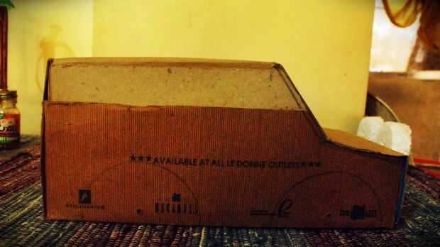 Cortar la caja de zapato para formar el tope lateral del coche.