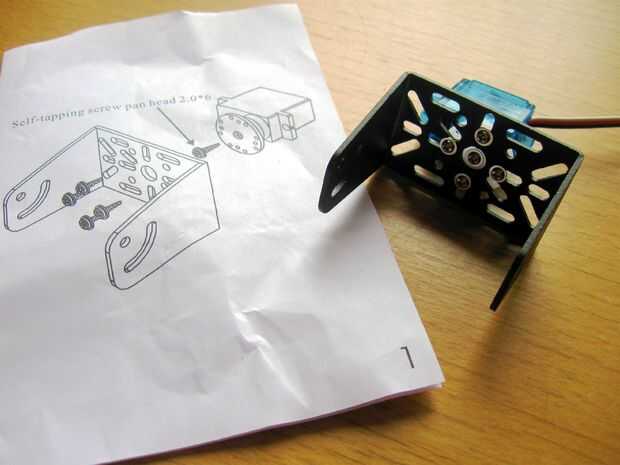 Las instrucciones de montaje para la cacerola / inclinación kit están incluidos en el kit. También puede descargarse desde mi sitio de soporte de producto . Utilizar servos cabeza de la cacerola de 2 x 6mm para montar el soporte en el cuerno del servo redondo y otra cabeza de la cacerola de 2 x 6mm para montar el cuerno del servo en el servo de pan como se muestra.