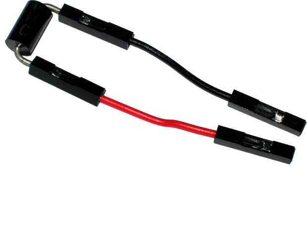 Los conductores en un diodo de 3A son ligeramente más gruesos que un jefe macho pin. doblar los cables cerca del cuerpo del diodo como se muestra y coloque dos cables pequeños a hembra jimper. será un ajuste apretado, pero esto es bueno ya que asegura una buena conexión eléctrica. Coloque un cable rojo al ánodo y un cable negro al cátodo.
