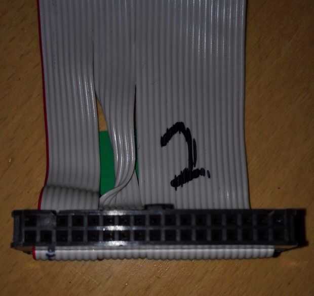 He hecho una foto del cable de cinta que estamos utilizando. Puedes ver que en este cable de cinta un par de cables han sido torcido alrededor, así que tenemos que utilizar pernos diferentes que usted podría haber visto en otros tutoriales.
