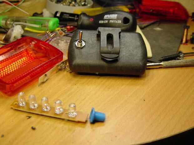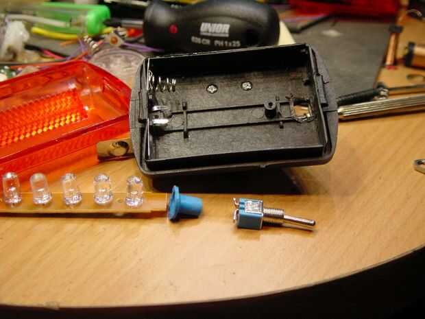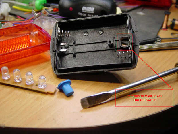 Corte el plástico paz para hacer espacio para el interruptor de palanca. Puede utilizar cuchillo, bisturí, papel de lija o dremel con lijado piedras, como se puede ver en fotos que me gusta usar cincel pequeño que he hecho del viejo destornillador y papel de lija para acabado