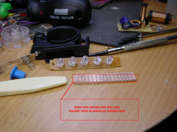 Cortar una nueva paz de tablero a leds, les de la soldadura en la conexión paralelo, observar la polaridad!