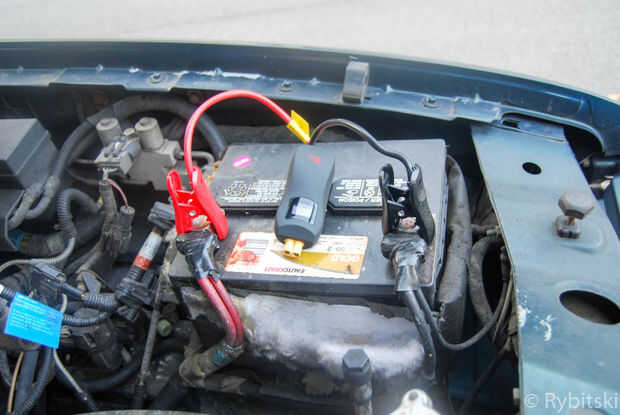 Conectar el arrancador a la batería correspondiente terminal. Asegúrese de que está recibiendo buen contacto de metal a metal entre las abrazaderas de resorte y los terminales de la batería. Si la batería está muy corroída necesita eliminar la corrosión con un cepillo de alambre. Vinagre puede utilizarse también para limpiar realmente cosas para arriba (obviamente esto no es necesario durante una situación de salto de emergencia).