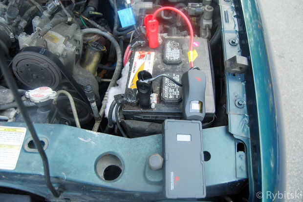 Enchufe en la mochila para la batería principal. En este modelo hay un botón en el lado de la mochila que permite a la batería. Presione el botón y la pantalla mostrará un conteo hacia abajo. Una vez que la cuenta atrás comienza a iniciar su coche. El tamaño de este dispositivo es engañar, incluso después de salto a partir de mi V6 camiones la unidad aún estaba en 100%. Ese es el poder de litio!
