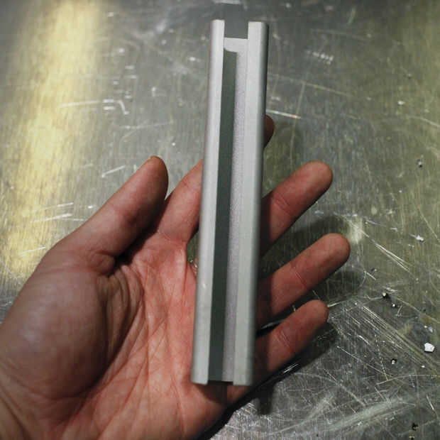 Rebabas de los bordes de la plantilla con una lima de metal y luego la lanzó en un chorro de arena para obtener la herramienta de aceites de la parte. Chorreo de arena también sacó toda la información material impresa de la culata cuadrada y me dejó con un Jumpwire Jig perfectamente helado.