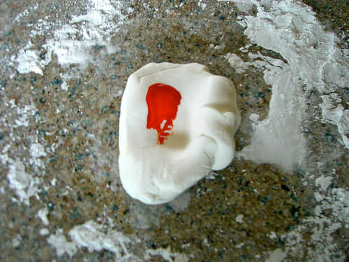 Para colorear el fondant simplemente añada unas cuantas gotas de tu color preferido y amasar para combinar. Si tiene miedo de manchar sus manos puede usar goma seguro alimentos / látex guantes. No, no uso tinte de comida a base de agua ya que esto alterará la consistencia del fondant, colorante gel es una opción muy barata. Si usted tiene cualquier paquete de kool-aid ahí, éstos se pueden también utilizar para colorear el fondant.