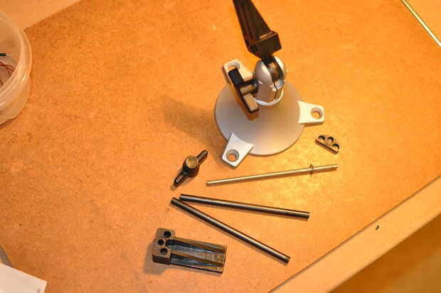 6. Quite los ejes de deslizamiento de la mandíbula. Salen con un punzón y martillo o herramienta similar.