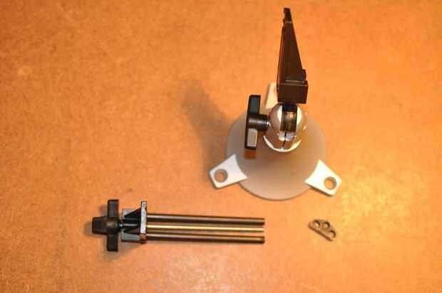 3. Quite la perilla del eje roscado. Usé un par de mordazas de tornillo de banco para sujetar la varilla roscada mientras que Desenroscar la perilla.