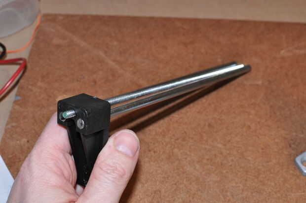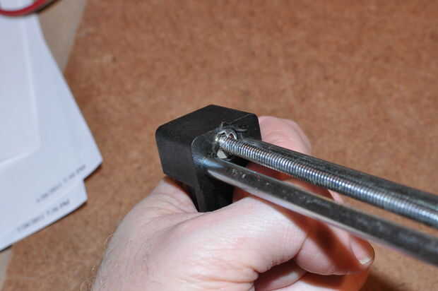 Edición: Usuario fubal19 tenía una gran sugerencia para el paso anterior. Dos tuercas de rosca a la varilla, apretar juntos, luego utilice una llave de las tuercas como palanca para la perilla.
