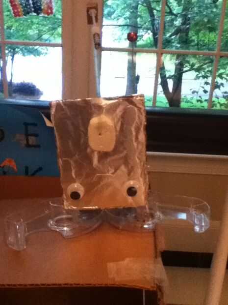 esto es un realmente fresco bote de basura robot que hice .una bombilla zócalo, pegamento caliente y otras cosas que encontré en mi caja de chatarra y usted puede hacer esta muy lindo JUNK bot!