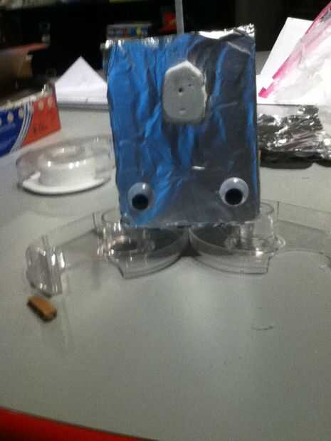 esto es un realmente fresco bote de basura robot que hice .una bombilla zócalo, pegamento caliente y otras cosas que encontré en mi caja de chatarra y usted puede hacer esta muy lindo JUNK bot!
