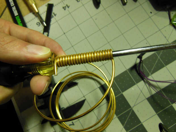 Después de clasificar a través de la caja de basura, os adjunto un circuito de cámara desechable y una bobina de alambre floral de la tienda del dólar a la cabeza para el look retro vintage. Es bastante fácil de hacer una gran mirada bobina enrollando apretadamente alrededor de algo cilíndrico como un destornillador o una varilla roscada.