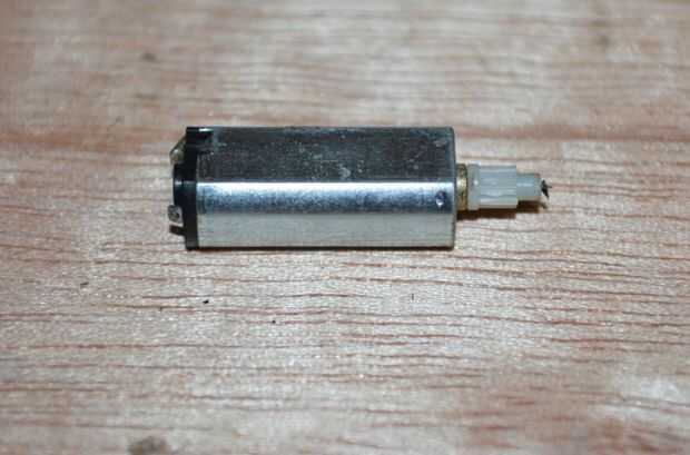 1. en primer lugar encontrar un motor adecuado. Creo que éste es de una unidad de disquetes. Otros buenos lugares para encontrarlos son; unidades de disco duros, walkmans, reproductores de cintas de viejos, juguetes.