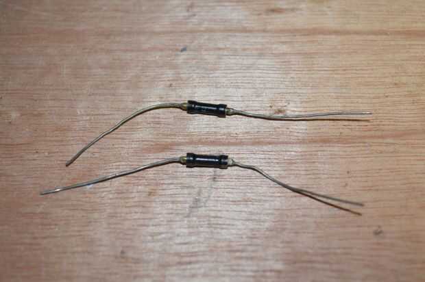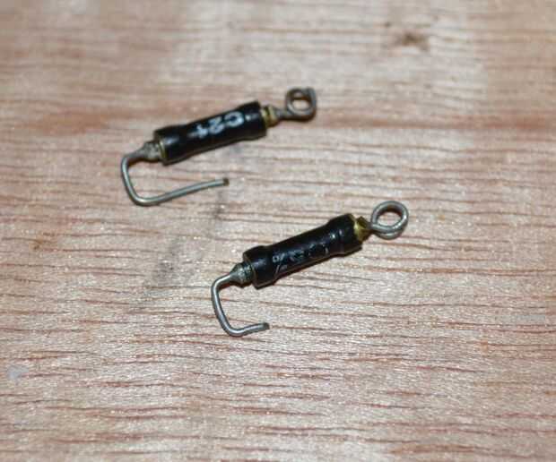 2. a continuación hacer los brazos. Usé algunas resistencias vintage y les había doblado como se muestra a continuación.