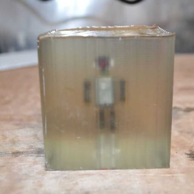 1. pega tu robot en la parte inferior del molde. Posición y asegúrese de que todo está donde usted lo desee antes de empezar a verter la resina.