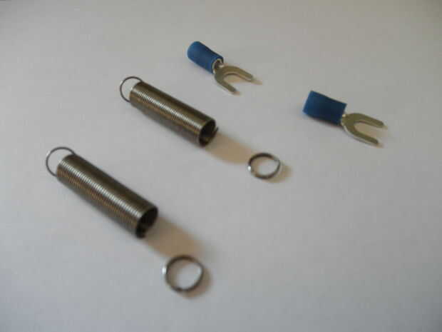 Los brazos están hechos de resortes con un terminal en un extremo. Utilice epoxi o pegamento caliente para fijar el terminal mano en el brazo de resorte. Estos manantiales habían doblado a extremos. Cortar el extremo doblado una y otra para el resorte al cuerpo utilizando el tornillo #8 1/2 pulgada tornillos de chapa.