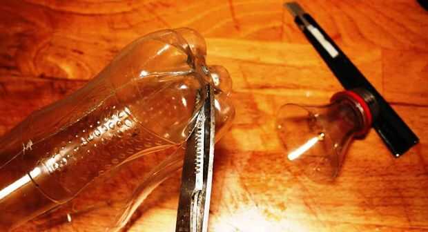 Después de la limpieza de la botella es el momento de corte para arriba.