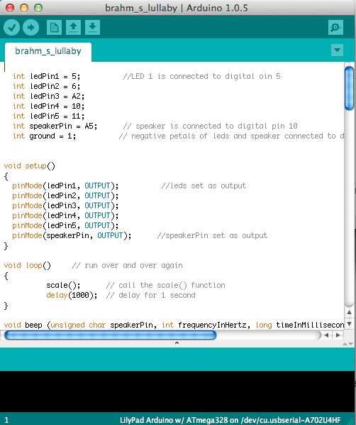 * Nota: mi acercamiento a la porción sana de la codificación es un poco complejo y requiere que hacer algún trabajo extra encontrar las notas, frecuencias y duración de cada nota. No he podido encontrar el código existente para este tema específico, pero probablemente se podrían encontrar algunos para otros lullabys.