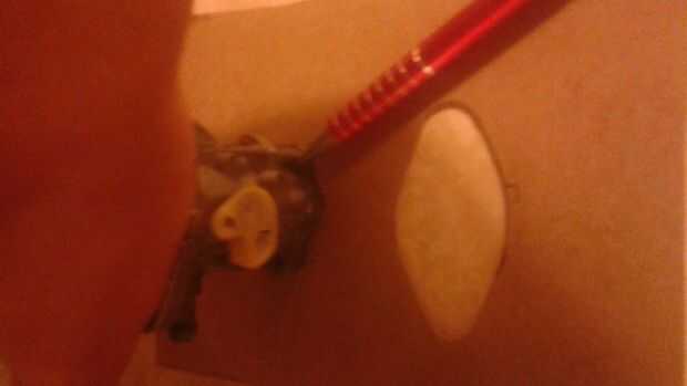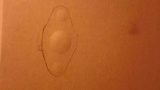 Mientras sujeta la cartulina en la parte exactamente donde se trazó el contorno uso el back-end de un destornillador y exponer los agujeros de perno y la zona centro. Esto hará un pequeño pliegue/contorno de donde tenemos que cortar.