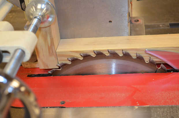 La plantilla está diseñada para sostener que la madera verticalmente mientras se dibuja sobre la hoja de sierra, lo que significa que la longitud de los dedos es dictada por cómo es alto la sierra se eleva por encima de la superficie de la mesa.