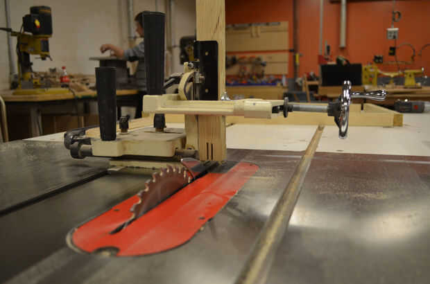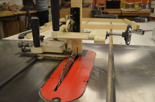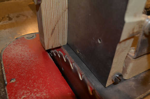 Si vas a hacer los empalmes múltiples, es mejor cortar todos los lados dos dedos ahora antes de cambiar el ajuste de la guía en relación con la hoja de sierra.