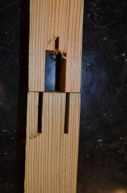 Es probable que los cortes realizados al lado del empalme de dos-fingered se ligeramente fuera de las líneas marcadas. Antes de cortar el lado de la articulación, dedos solo Revise las marcas en esa pieza. Sujete la pieza en la plantilla y ajuste el soporte de lado tal que la hoja de sierra se cortan debe ser ligeramente hacia el exterior de estas líneas. Es mejor hacer el corte por lo que el dedo es ligeramente más grueso que es necesario y luego ajustar el corte un poco para hacer más pequeño. Corte muy fino en la primera ronda es un mal día.