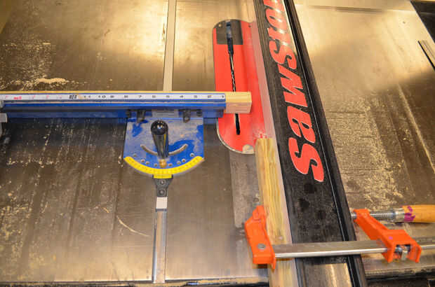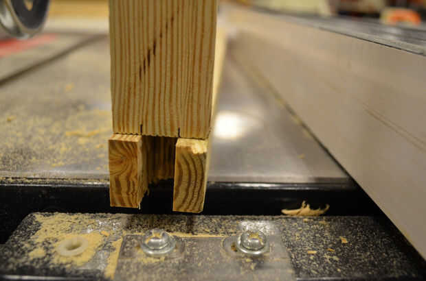 Corte los hombros del dedo poniendo el caldo a su lado y ajuste de la altura de la hoja para que alcance las ranuras de corte usando la plantilla. Utilice un calibrador de trineo o inglete corte transversal para mantener el stock en un ángulo de 90 grados a la hoja mientras realizas el corte. Se recomienda el uso de la guía de la sierra a mantener una posición consistente de la corte, pero tienes que tener cuidado de no conseguir el stock bloqueado entre la sierra y la guía. Una buena manera de lograr esto es fije una pieza de madera de desecho a la valla bien a la parte delantera del comienzo de la hoja y usar eso como un bloque de tope. Una vez que el material es empujada más allá del final del bloque de parada de que la acción no estará en contacto con la cerca, reduciendo enormemente la posibilidad de bloqueo y contragolpe durante el corte. Los dedos te lo agradecerán.