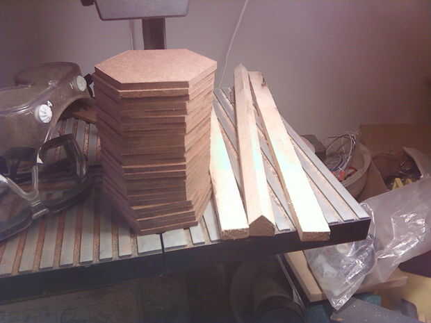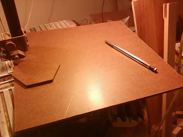 Lo primero que tenía que hacer era averiguar las dimensiones de un perfecto hexágono. Después de que lo hice, hice una plantilla de 1/8" masonite (también conocido como aglomerado, et al.) Usé esta plantilla como patrón para cortar el resto de las piezas con mi sierra de cinta para que todos ellos fueron relativamente similares en tamaño. También se utiliza algunas Junta de arce de 3/4" tuve poniendo alrededor a rip road, ciudad y asentamiento los espacios en blanco en mi mesa de sierra. Más tarde estos cortaría en pedazos individuales. Las ciudades no se muestran, pero fueron formados como un castillo; cuadrado con cuatro torres en las esquinas. Lo hice cortando 3/4 cubos de arce y ejecutarlos en el router con un 1/2" recta poco desde ambas direcciones. [_]-------[_] Kind | | de | | como ___ [_] [_] esto.