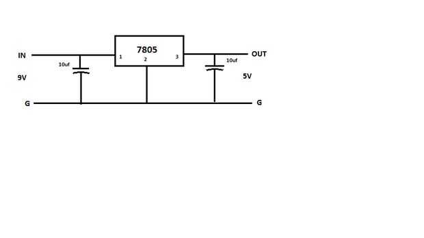 Entonces usted necesita ajustar el regulador de voltaje 7805, condensadores y led.
