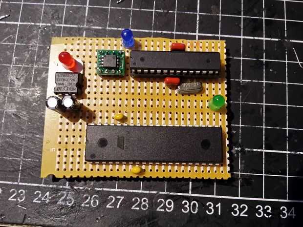 Luego usé un led para cada microcontrolador así que usted puede averiguar si los microcontroladores están trabajando o no subiendo un parpadeo del bosquejo sobre sus chips.