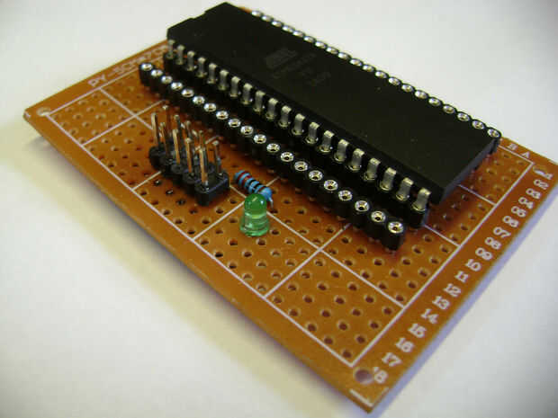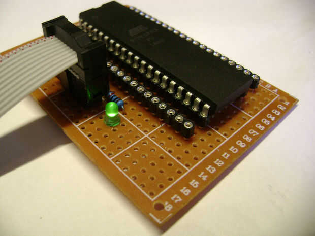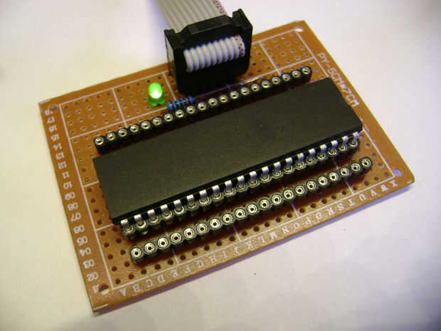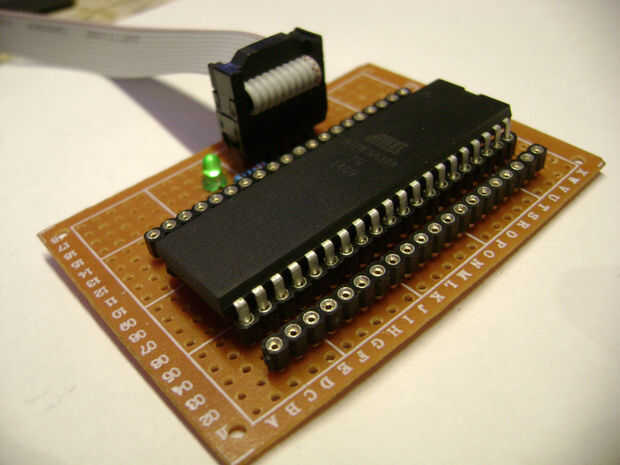 Utilicé un ATmega32A pero esto se puede hacer con casi cualquier microcontroladores de Atmel (a través de agujeros DIP pins uno sólo).