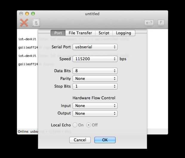 Una ventana serie ahora debe estar abierta en su ordenador PC o Mac: