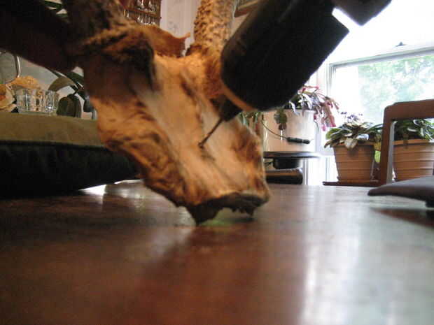 Otra parte importante de este paso es elegir el conjunto de las cornamentas que vas a utilizar. Usted tendrá que utilizar un pequeño suficiente conjunto de permanecer equilibrado en la cabeza, pero también quieres tener una parrilla impresionante. Un pequeño punto 8 es probablemente la mejor manera de ir.