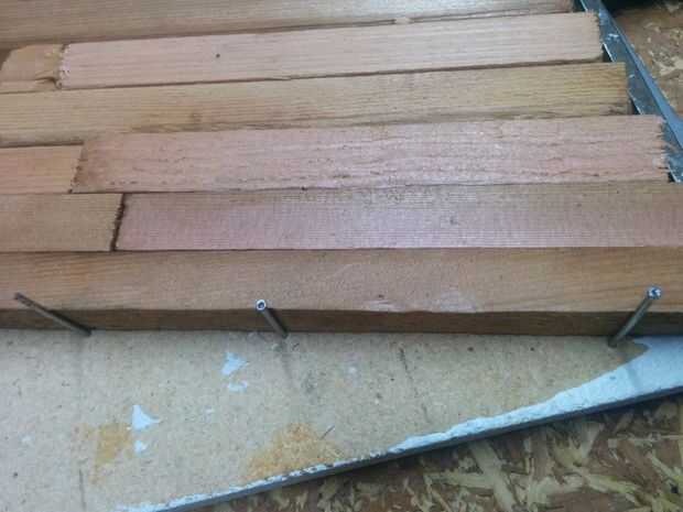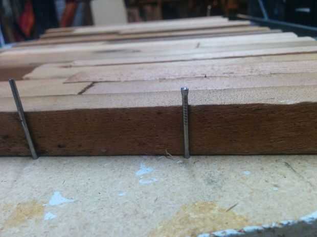 En un pedazo de madera, más grande que la tabla final, coloque clavos en uno de sus extremos.
