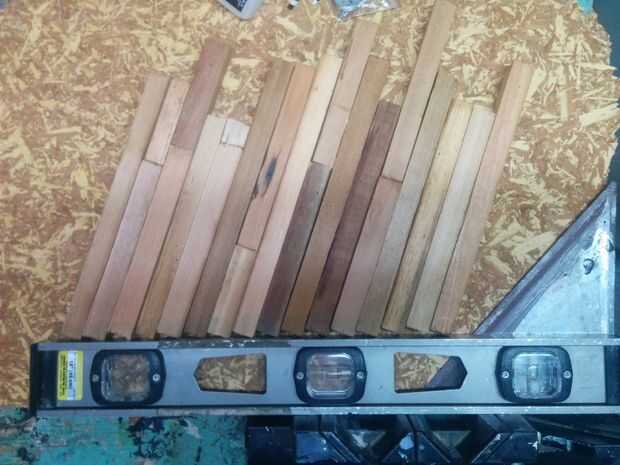 Cortar tiras de tus piezas de madera y colocarlos en un orden agradable.