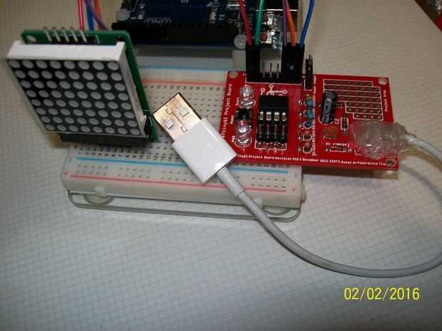 Junta de proyecto ATtiny85 V-USB y una pantalla de matriz de LED rojo de 8 x 8
