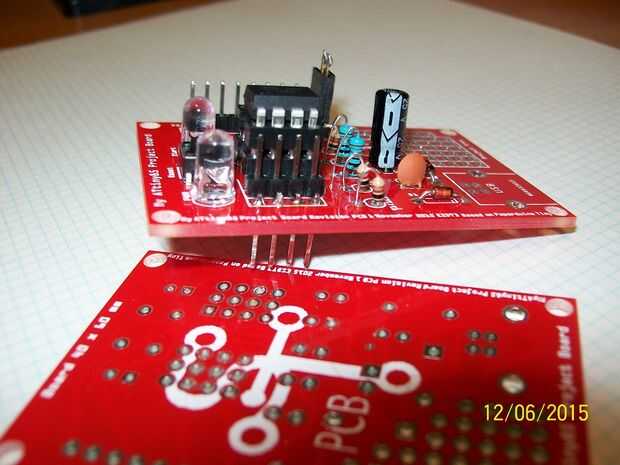 Hay relativamente pocos componentes, por lo que es realmente sólo una progresión lógica. Soldadura en los componentes más pequeños primero, luego las cabeceras y zócalo del IC. Finalmente completar el montaje por soldadura en el conector USB. De hecho, las cabeceras alrededor ATtiny85 chip puede colocarse como desea colocar encabezados masculinos bajo la Junta permitirá la PCB para ser colocado en una placa sin soldadura. Esto permitirá que la pcb para fuente de alimentación de la conexión usb y el pin para el proyecto de la protoboard.